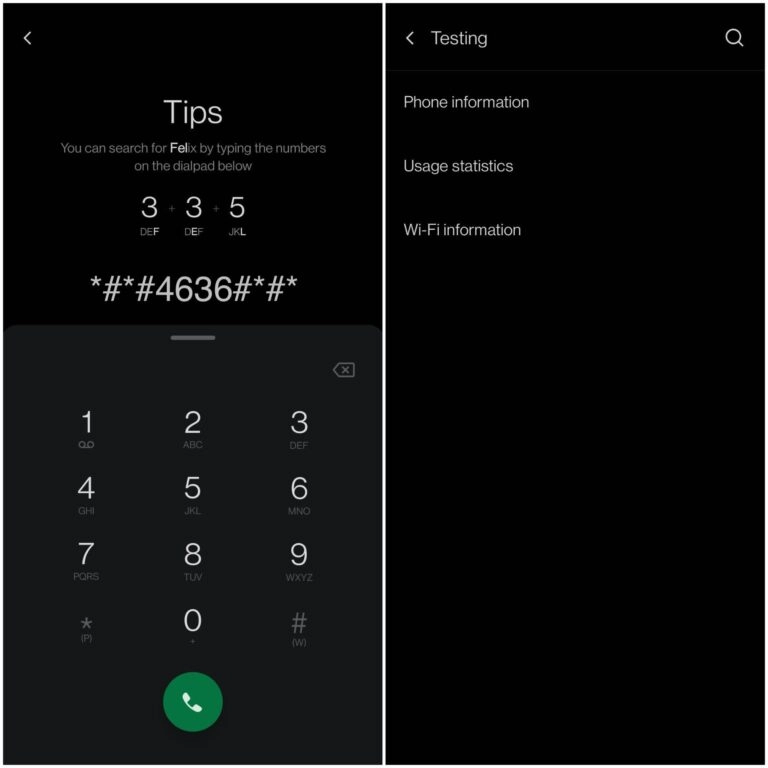 برنامه Phone را در تلفن هوشمند خود باز کنید و ##4636## را در صفحه شماره گیری وارد کنید.